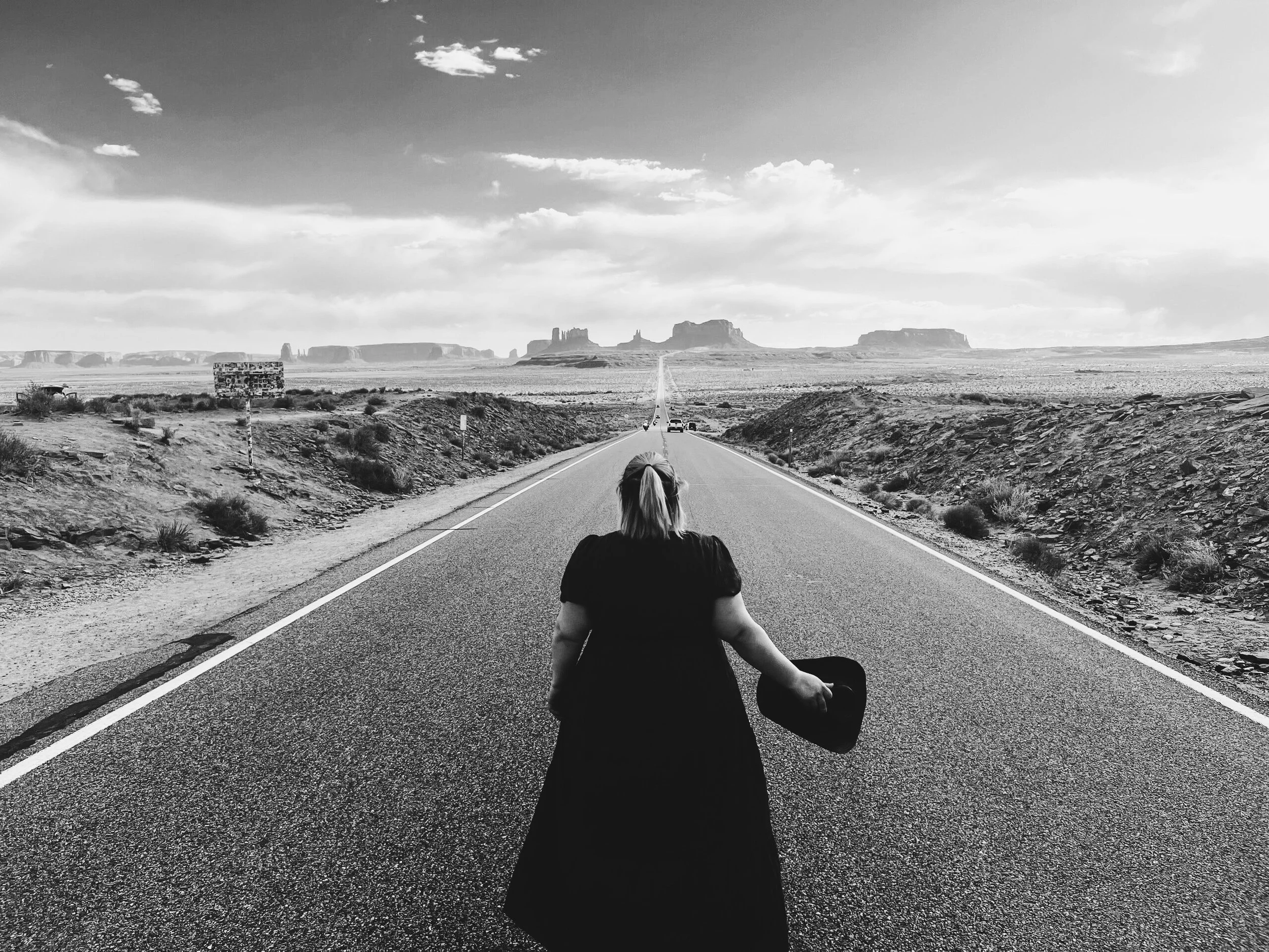 Much of her work is rooted in nostalgia, not only for her own past, but for landscapes inherited through film, television, and cultural memory. Growing up far from the neon signs, desert highways, and suburban streets she often photographs, she came to know them first as imagined places. When encountered in life, they carry the uncanny familiarity of somewhere remembered, rather than discovered.