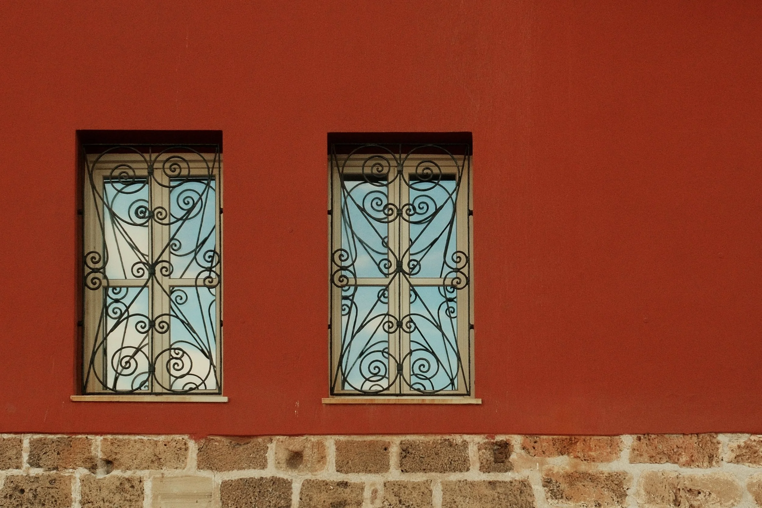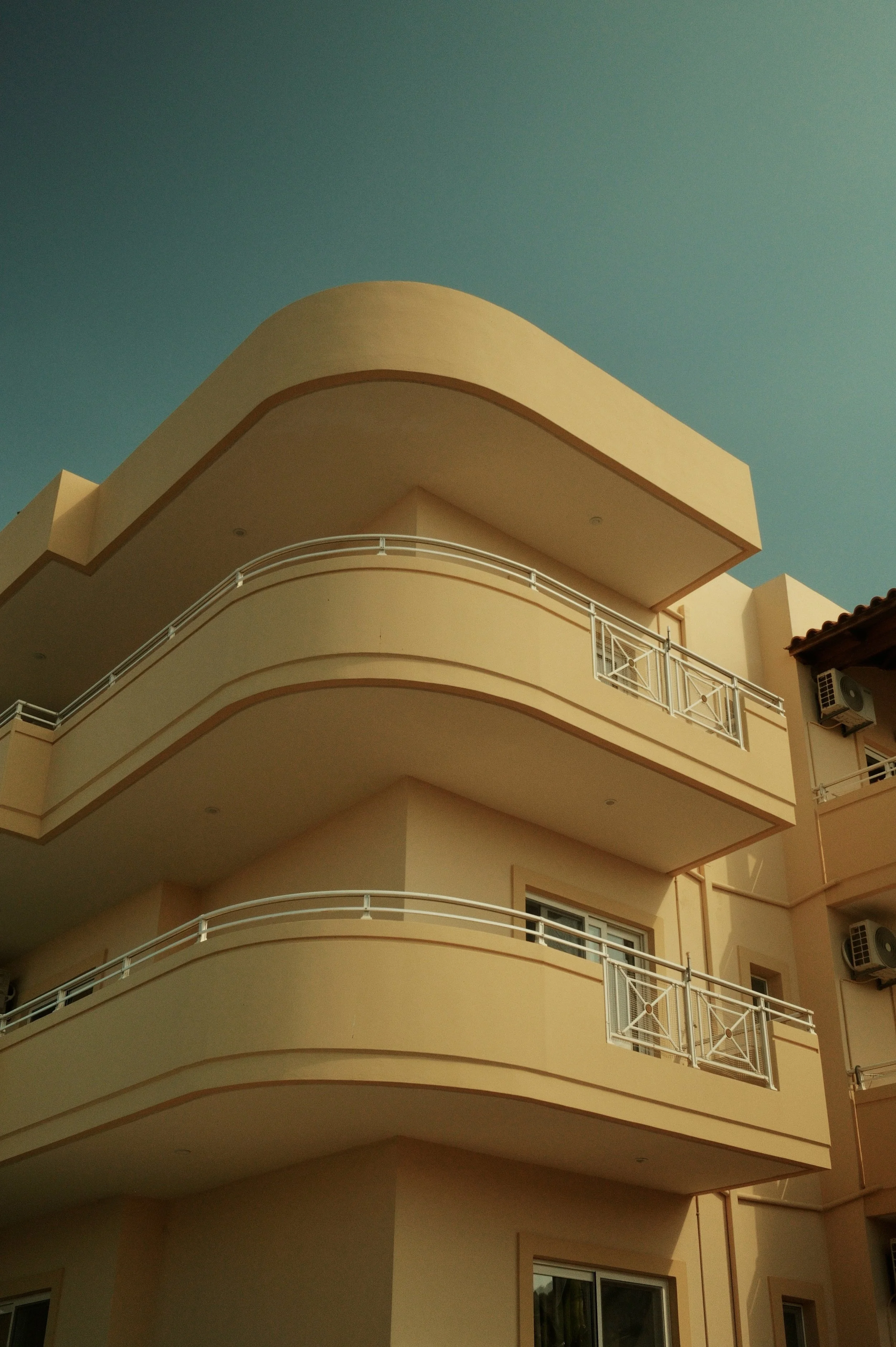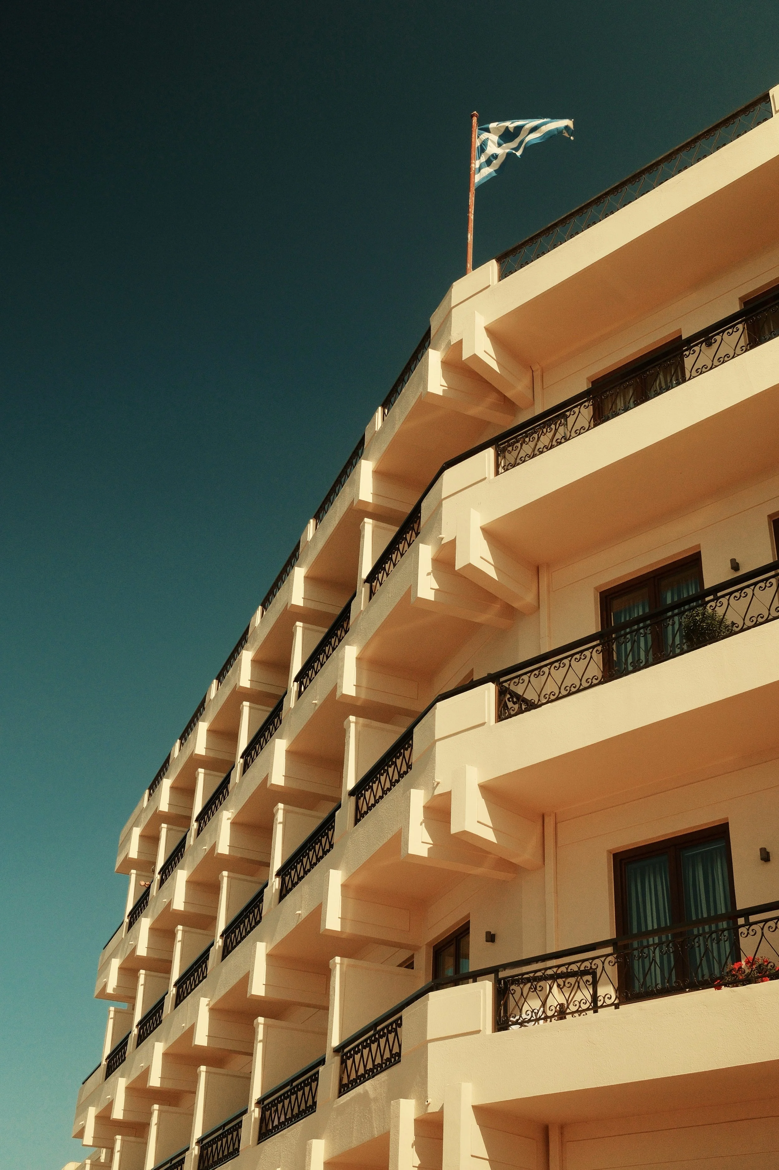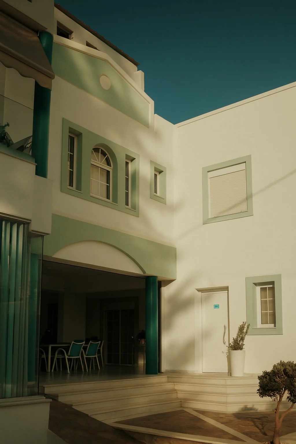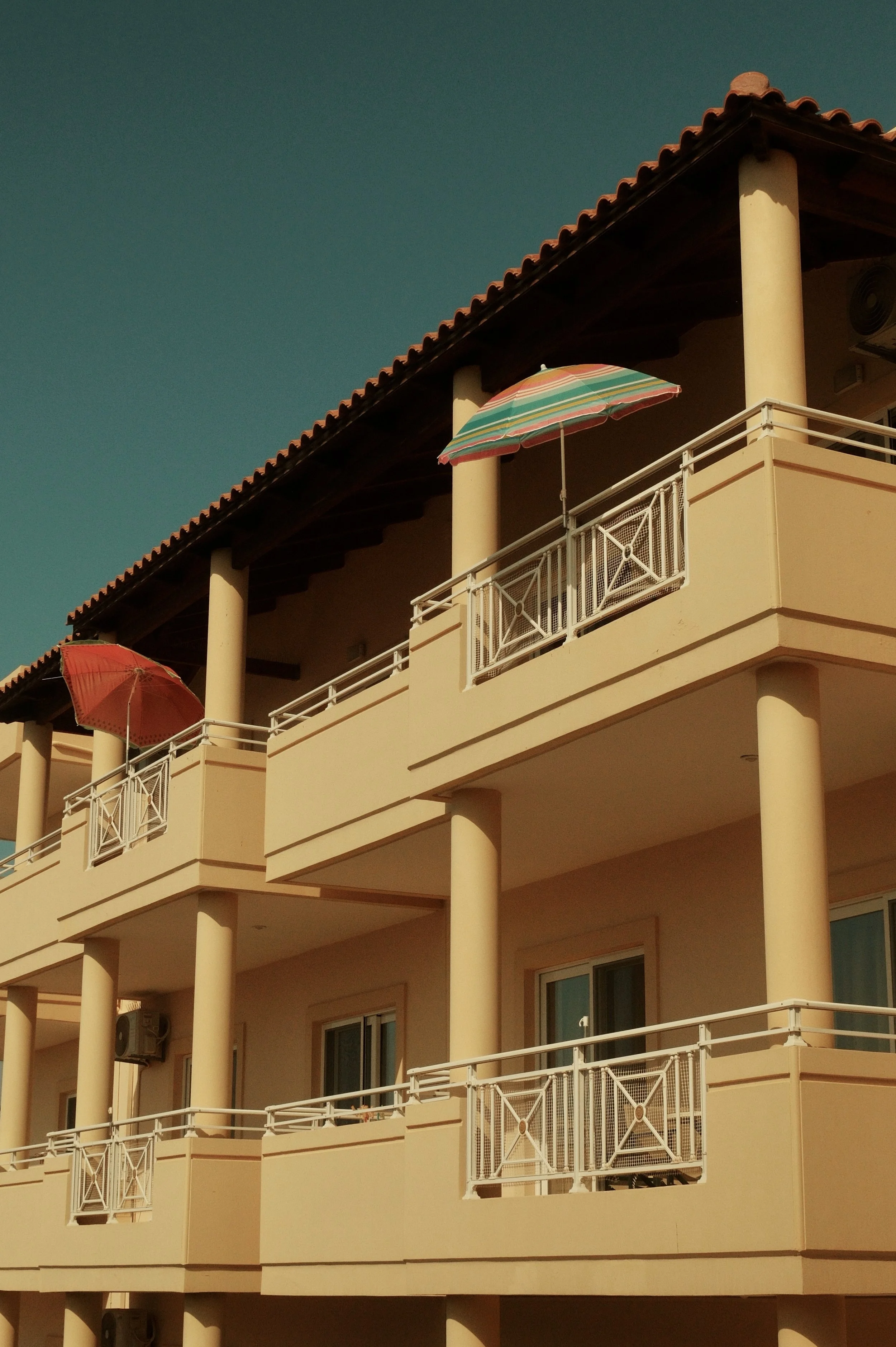 In Greece, the streets turn into a palette. Houses are washed in ochre, turquoise, and faded pink; shutters stand bright against whitewashed walls; balconies lean into the sky. Each building carries its own character, marked by colour and weather, by light and time.