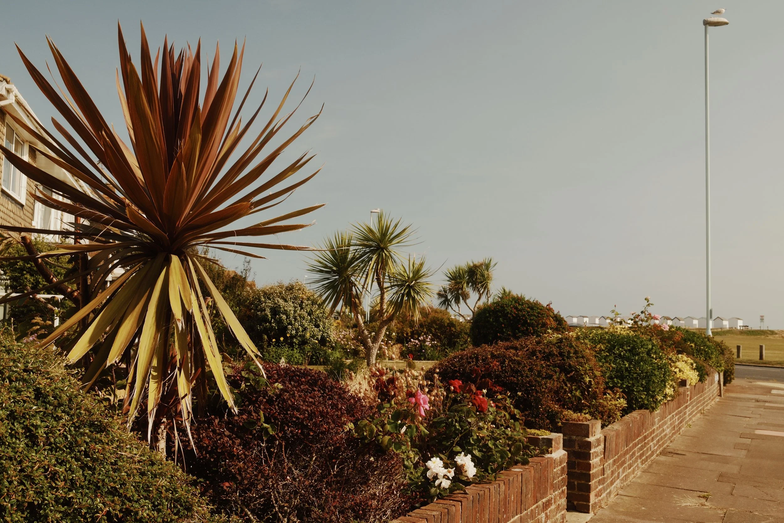 A quiet stretch of the English coast, where the salt air carries the scent of roses over low garden walls and the streets curve gently toward the sea. These photographs are drawn from small seaside towns, but together they make up a single imagined place, a place of neat bungalows, hanging baskets, and afternoon sun on painted fences.