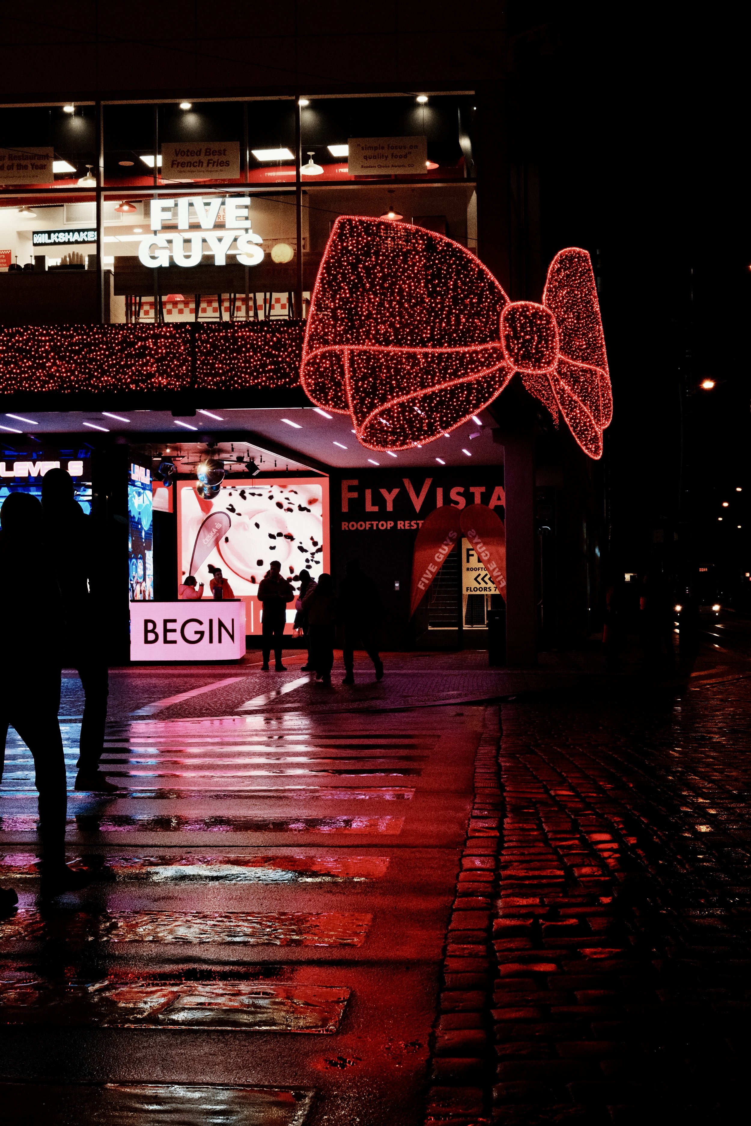 Neon signs and illuminated streets transform familiar places after dark. These photographs explore how cities and roadside environments change at night, documenting glowing signage, shopfronts and architectural details lit by artificial light. The images capture the colour, atmosphere and quiet energy of places that come alive after sunset
